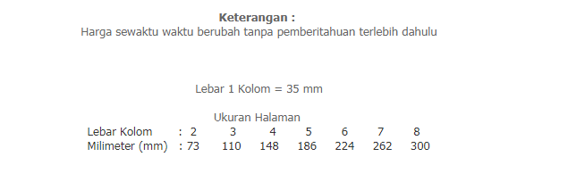 Anda dapat mengetahui harga iklan Display Harian Jogja dengan cepat dan mudah dengan melihat tarif dibawah ini dan menghubungi Customer Service Iklan kami.