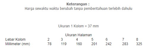 Anda dapat mengetahui harga iklan display Investor Daily Indonesia dengan cepat dan mudah dengan melihat tarif dibawah ini dan menghubungi Customer Service Iklan kami.