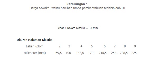 Anda dapat mengetahui harga iklan Display Kompas Klasika Jawa Barat dengan cepat dan mudah dengan melihat tarif dibawah ini dan menghubungi Customer Service Iklan kami.