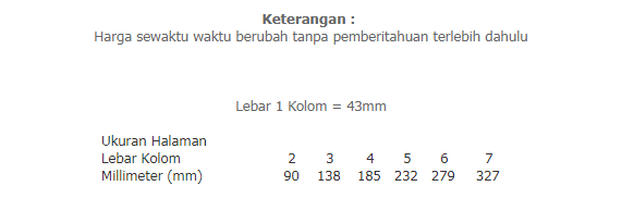 Anda dapat mengetahui harga iklan Display Memorandum dengan cepat dan mudah dengan melihat tarif dibawah ini dan menghubungi Customer Service Iklan kami.
