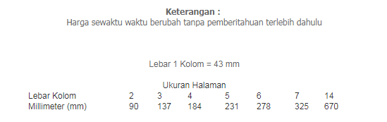Anda dapat mengetahui harga iklan Display Palembang Ekspres dengan cepat dan mudah dengan melihat tarif dibawah ini dan menghubungi Customer Service Iklan kami.