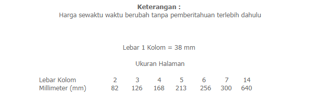 Anda dapat mengetahui harga iklan Display Pasundan Ekspres dengan cepat dan mudah dengan melihat tarif dibawah ini dan menghubungi Customer Service Iklan kami.