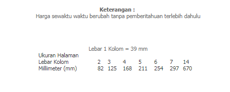 Anda dapat mengetahui harga iklan Display Radar Tegal dengan cepat dan mudah dengan melihat tarif dibawah ini dan menghubungi Customer Service Iklan kami.